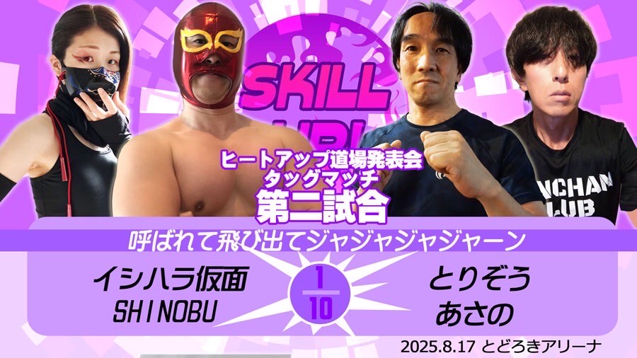 第2試合タッグマッチ 10分1本勝負呼ばれて飛び出てジャジャジャジャーンイシハラ仮面&SHINOBU vs とりぞう&あさの